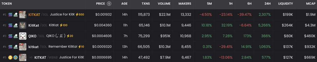 His death caused many in the community to mourn, but crypto degens decided it was an opportunity to make a quick buck and quickly launched KitKat-themed coins, some of which have reached market caps of $8.6 million.