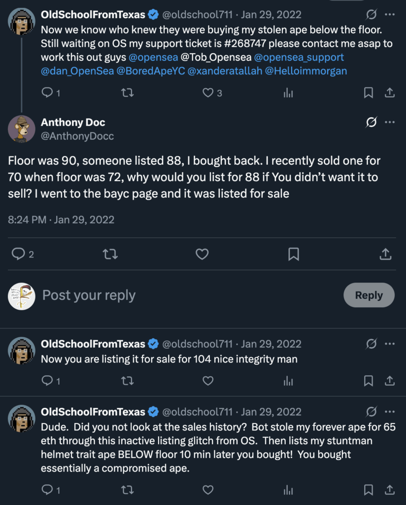 Indeed, at least one other Bored Ape buyer was convinced Shnayderman had ripped him off by buying his “forever ape” below the floor price after it was stolen by a bot.