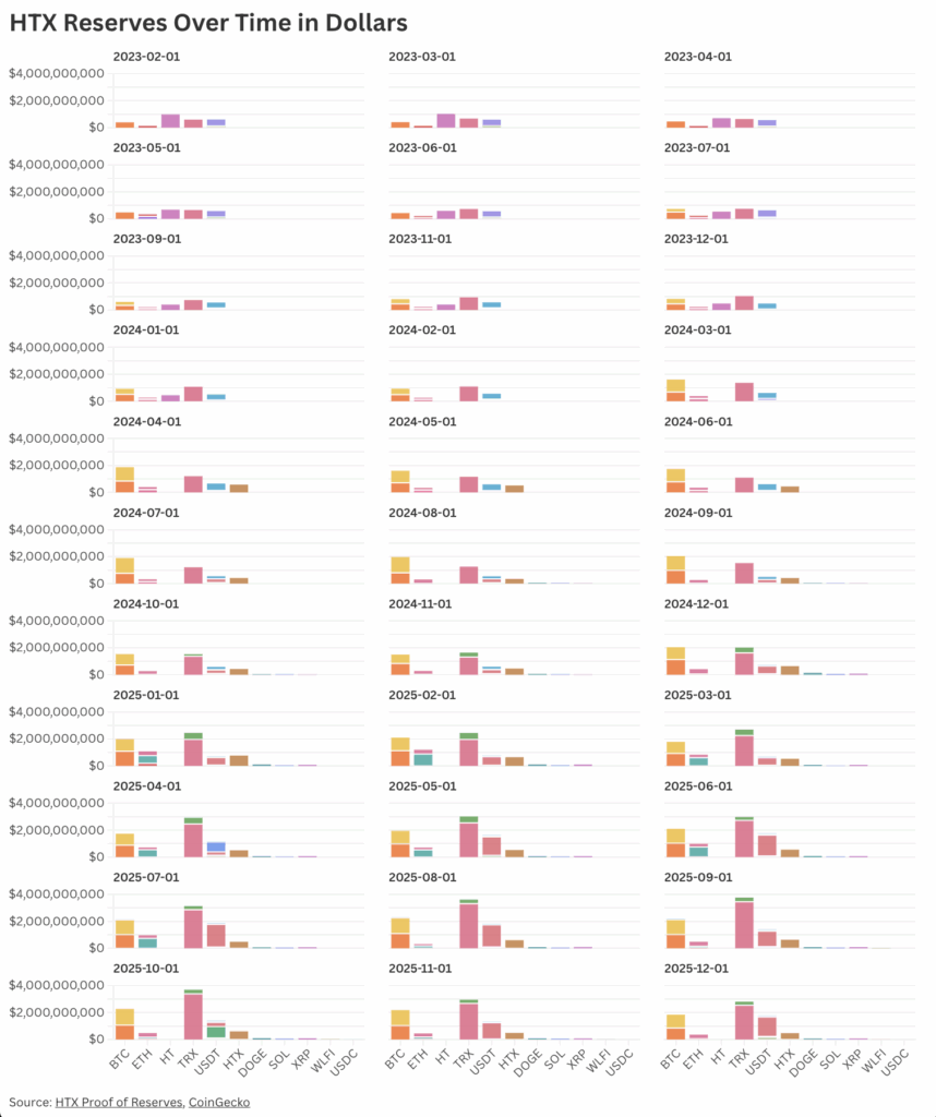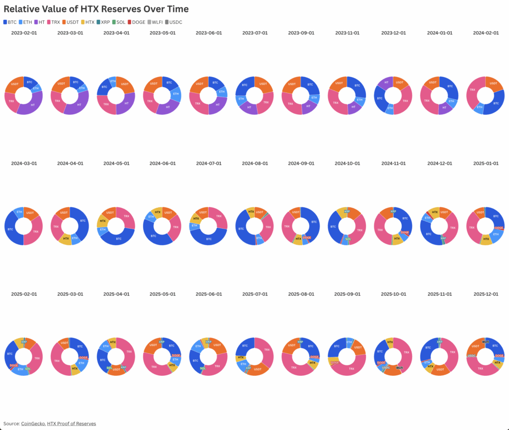 TRX, the gas token for Sun-founded TRON, has also had months where it is the largest asset in dollar terms held in the HTX reserves.