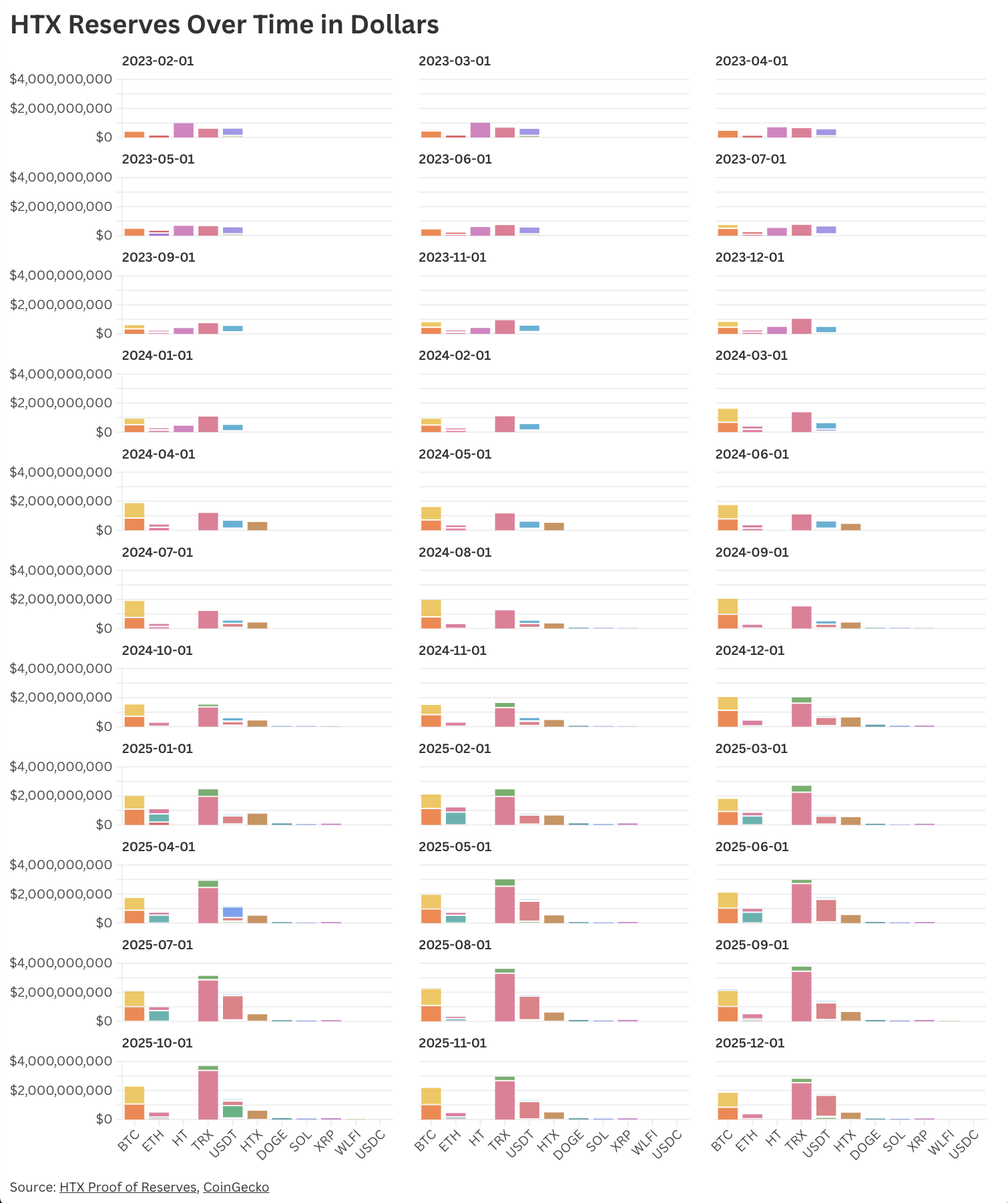 But for a while it was a portion of HTX’s reserves, as makes sense for the exchange that was once Huobi, with several months in 2023 when it was the largest asset in dollar terms held at HTX.