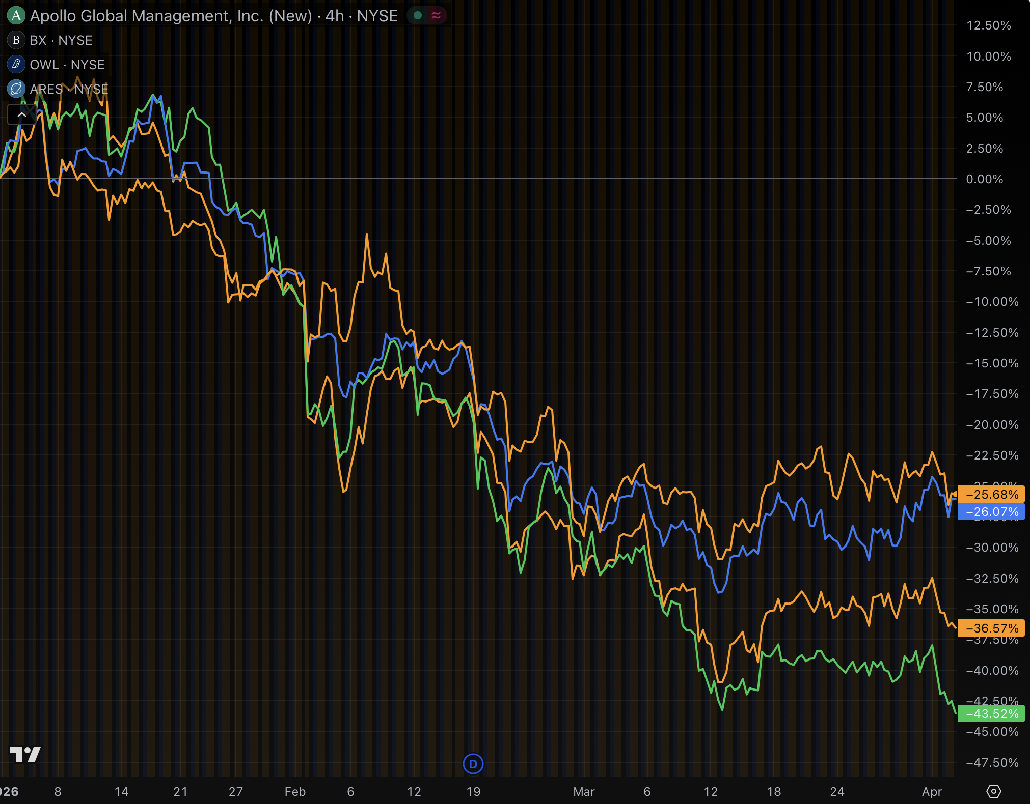 Blue Owl Capital is the poster child of the current crisis in private credit. The company permanently halted redemptions from its retail-focused Blue Owl Capital Corp II in February. Its stock has declined 42% since the start of the year and 60% over the past twelve months.